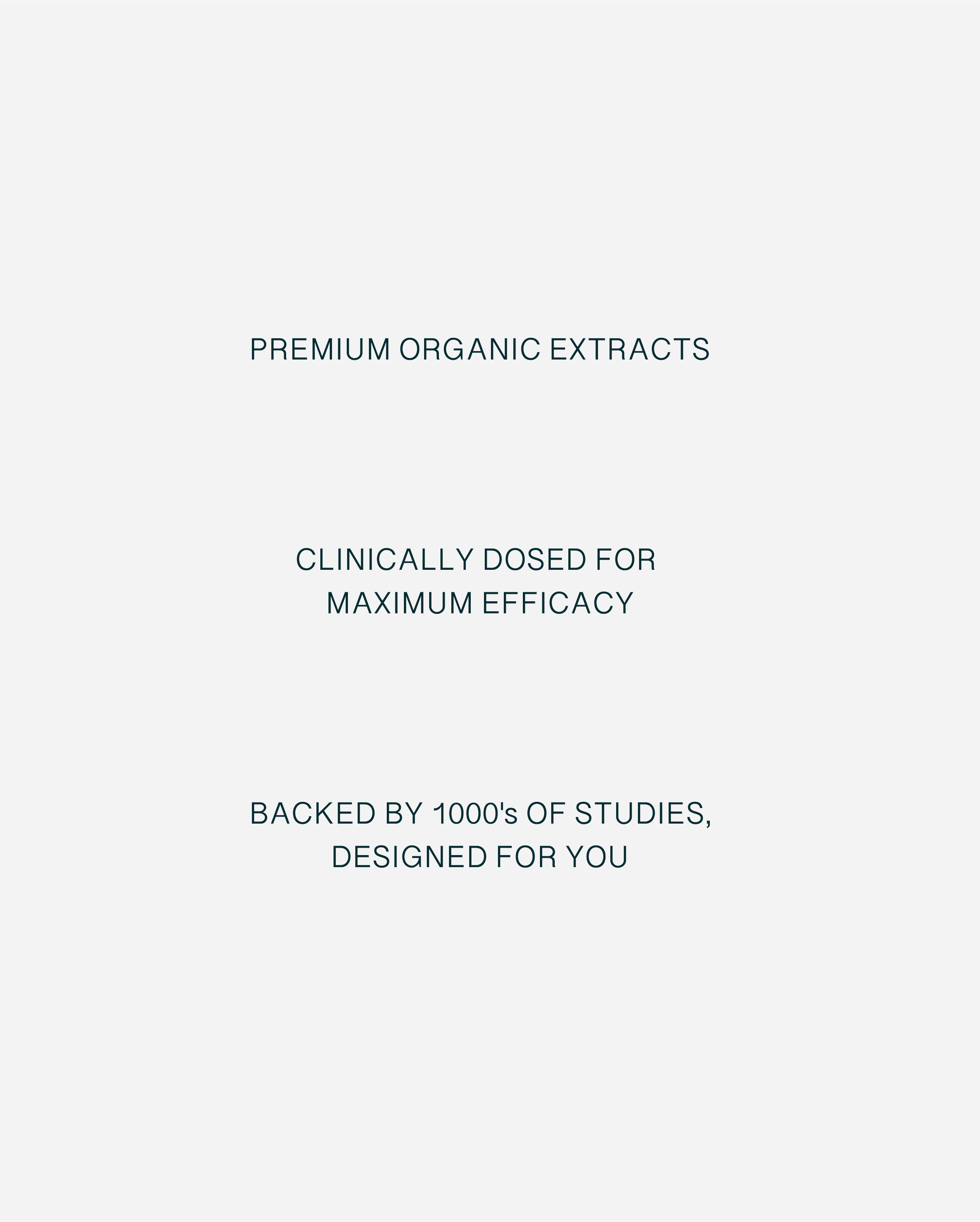We use clinically researched forms and doses, and standardised herbal extracts like Korean Ginseng, Lion's Mane and Bacopa Monnieri at a potent 10:1 ratio - so you get more concentrated, high-quality ingredients than typical supplements on the market.