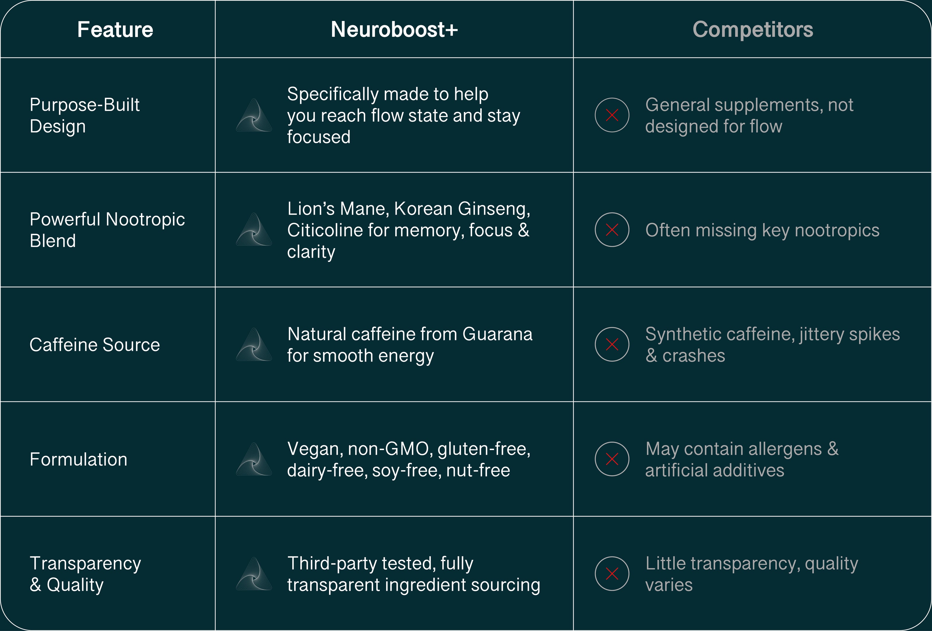 Neuroboost+ is formulated with clinically studied, high-quality ingredients at effective doses, which many cheaper supplements lack. You’re not just paying for ingredients—you’re investing in a formula designed for real results and backed by science.