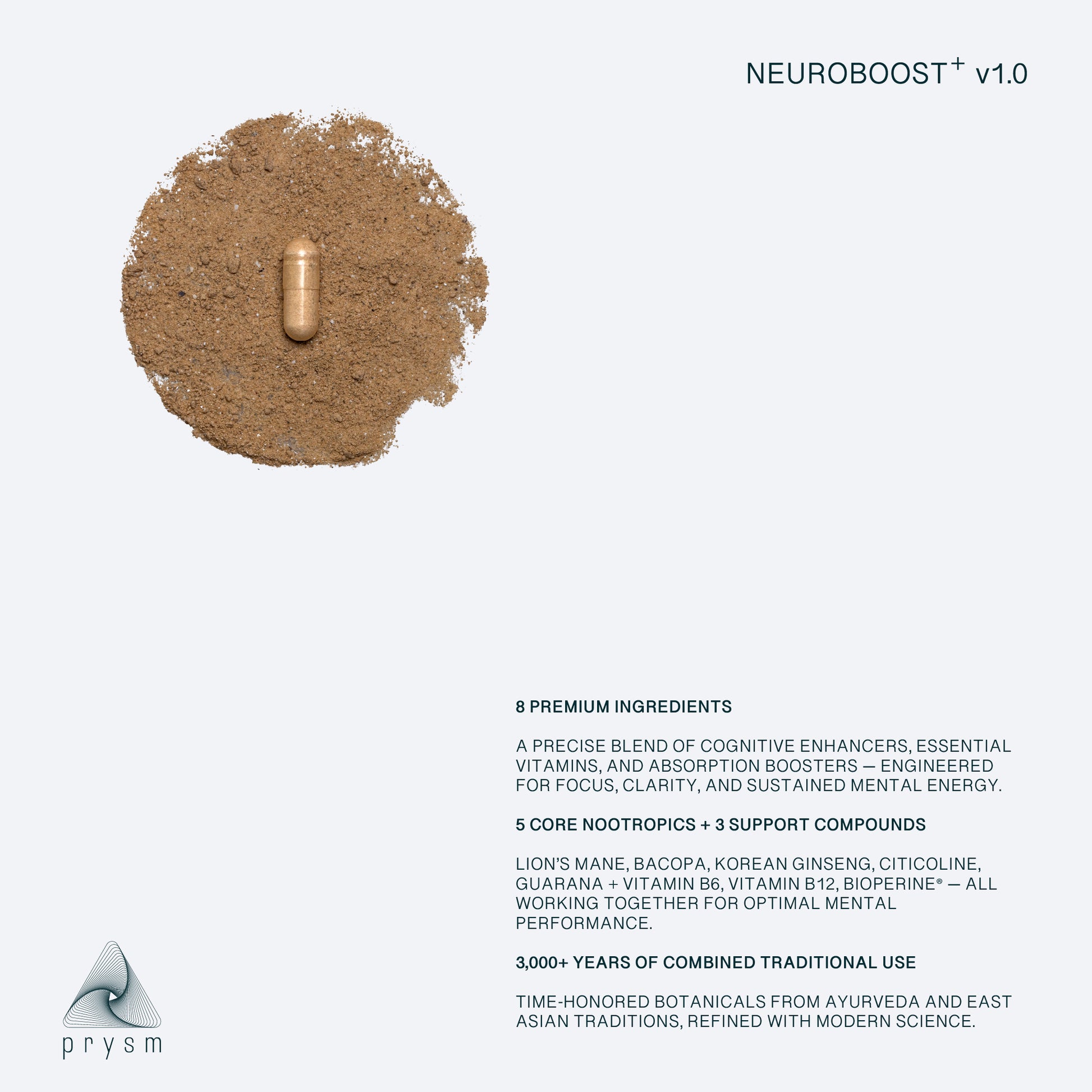 NEUROBOOST+ v1.0 – Powered by brain-boosting compounds to fight brain fog, fuel focus, and supercharge your day.